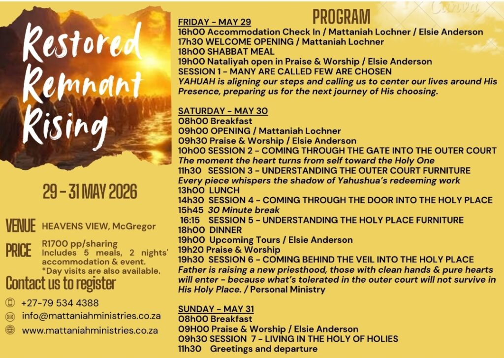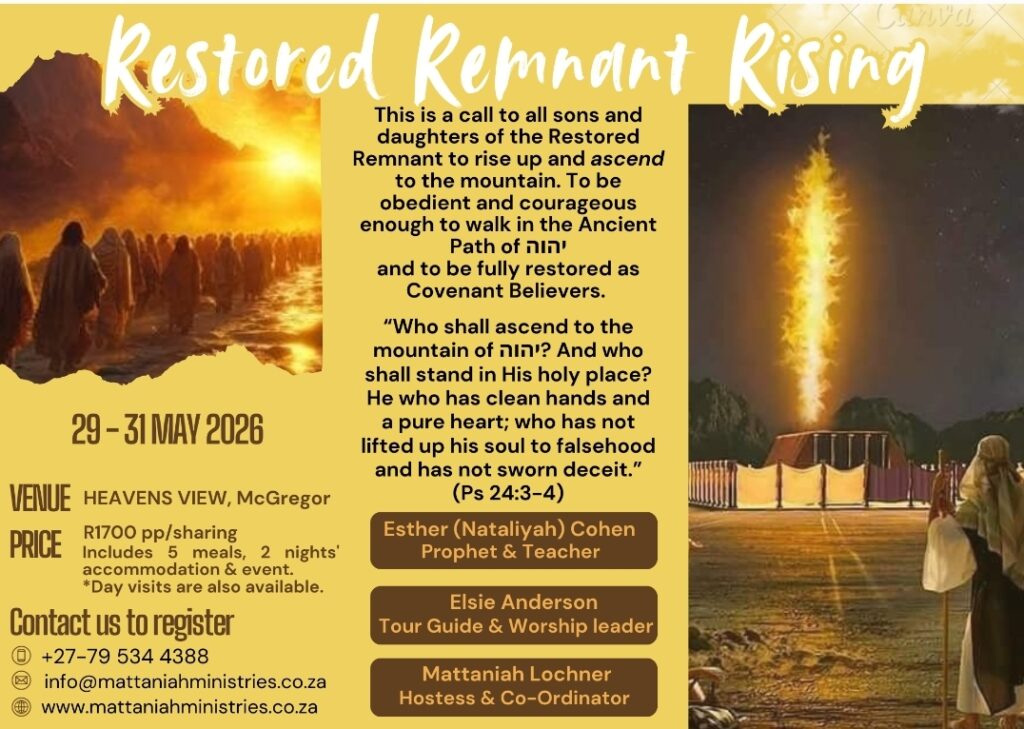 Nataliyah (Esther) Coben is also one of the speakers at the “RESTORED REMNANT RISING” Conference in MAY 2026. If you want to register for this profound gathering of the remnant, here is the link: https://tinyurl.com/254m9kf6